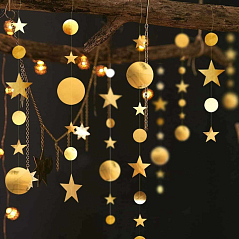 Гирлянда "Кружочки" блеск/металлик 5 см х 4,5 м, Золото Гирлянда "Кружочки" блеск/металлик 5 см х 4,5 м, Золото