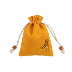 Мешочек из искусственного льна с орнаментом 10х14 см, желтый Мешочек из искусственного льна с орнаментом 10х14 см, желтый