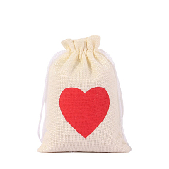 Мешочек из мешковины Сердце 10х14 см, айвори+красный Мешочек из мешковины Сердце 10х14 см, айвори+красный