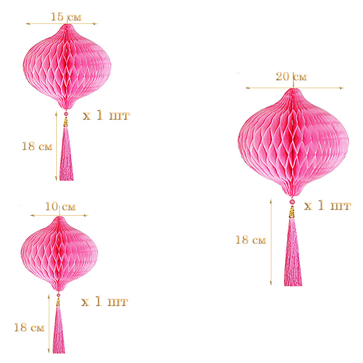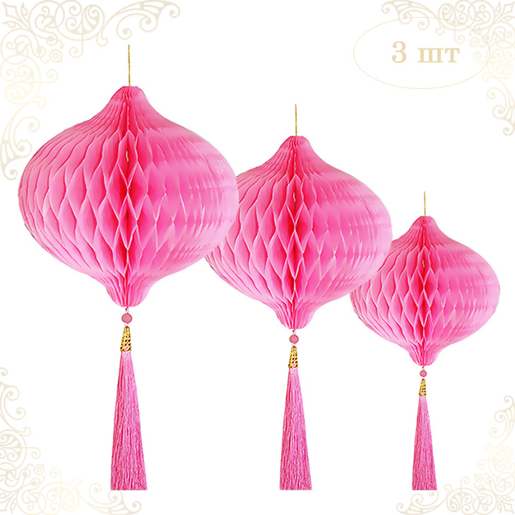 Бумажное украшение Шары-соты с кисточкой НАБОР 3 шт, розовый