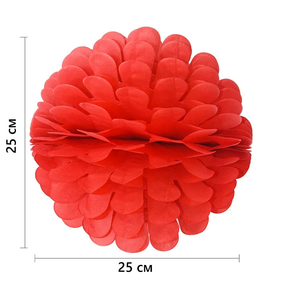 Бумажное украшение Цветочный шар-соты 25 см, красный