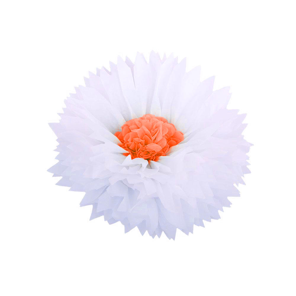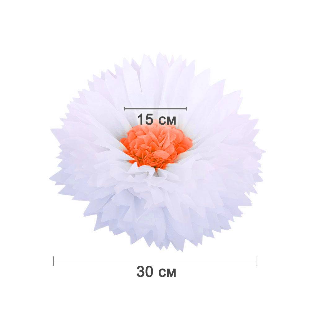 Бумажный цветок 30 см белый+оранжевый