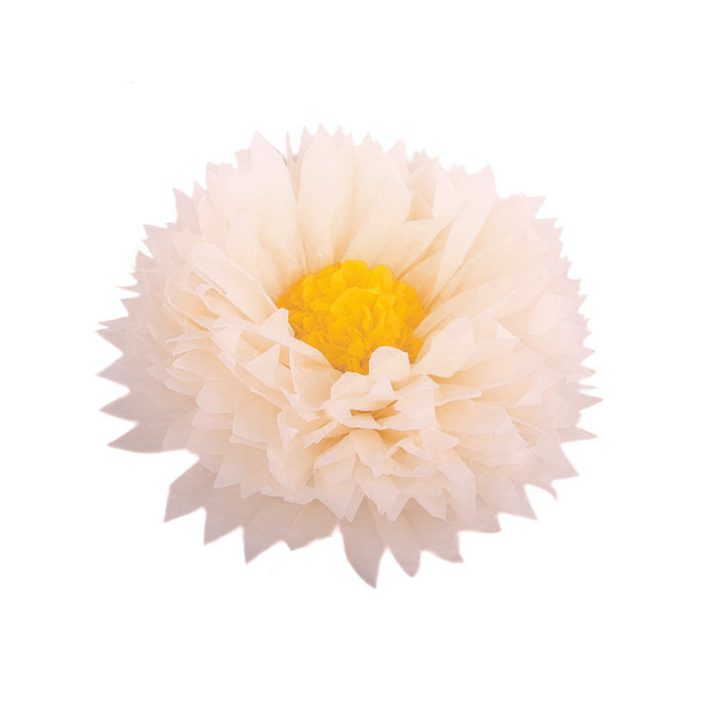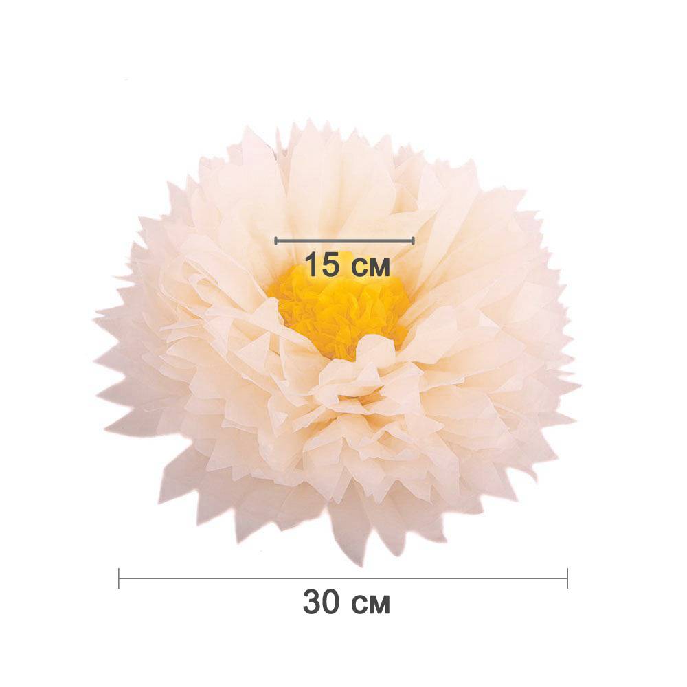 Бумажный цветок 30 см белый+ярко-желтый