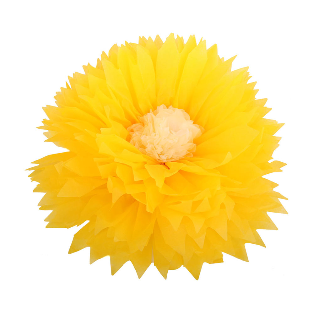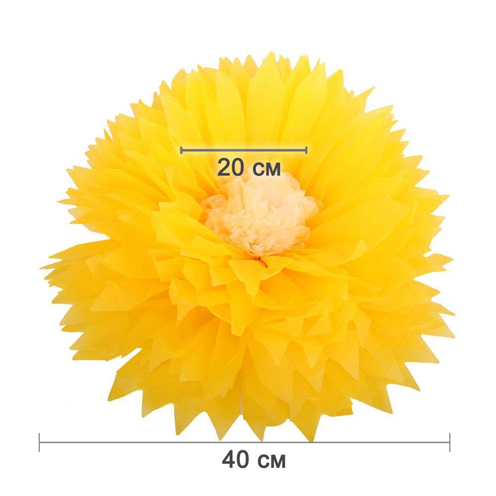 Бумажный цветок 40 см ярко-желтый+айвори