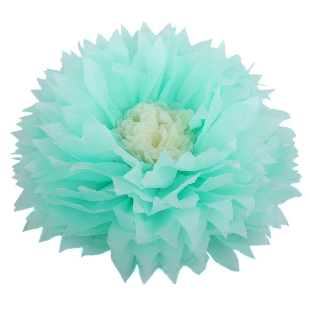 Бумажный цветок 40 см мятный+айвори