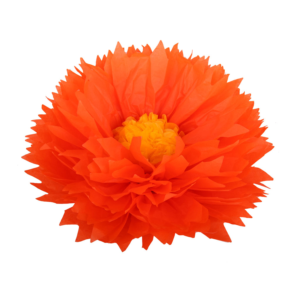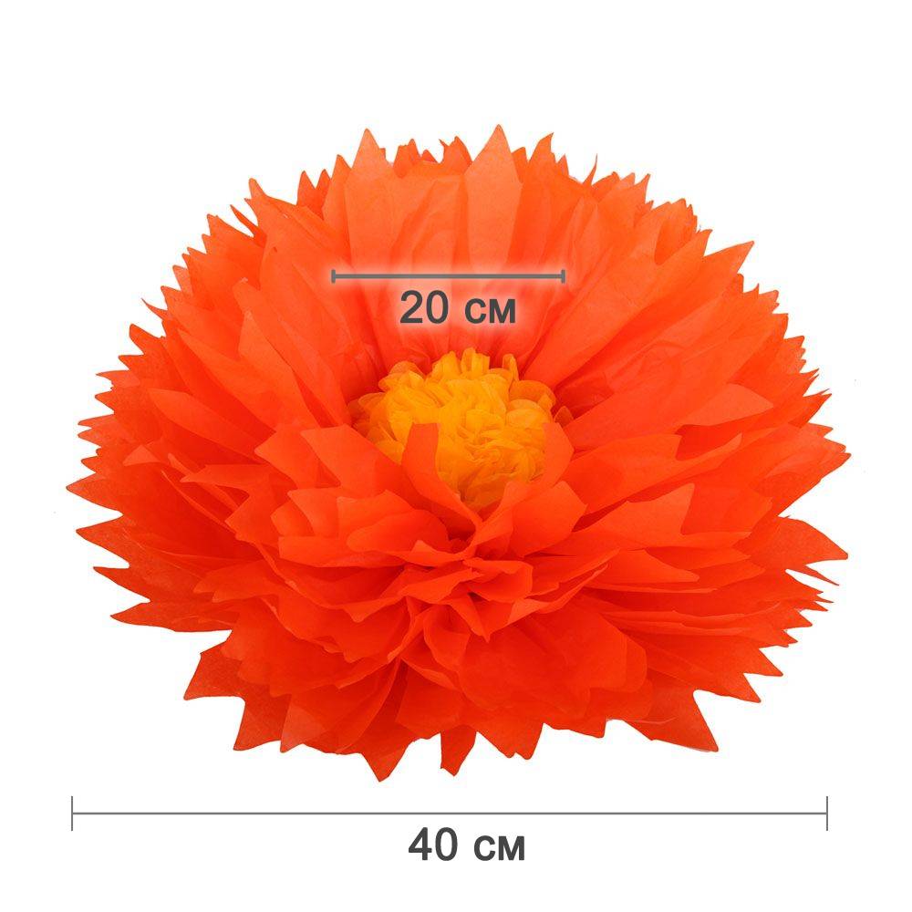 Бумажный цветок 40 см оранжевый+ярко-желтый
