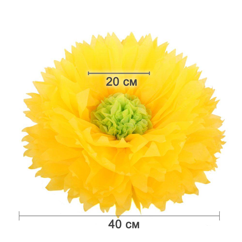 Бумажный цветок 40 см ярко-желтый+салатовый