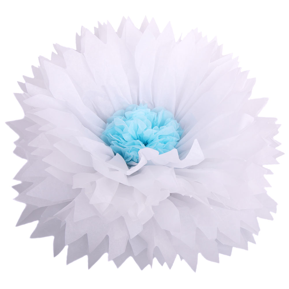 Бумажный цветок 50 см белый+голубой