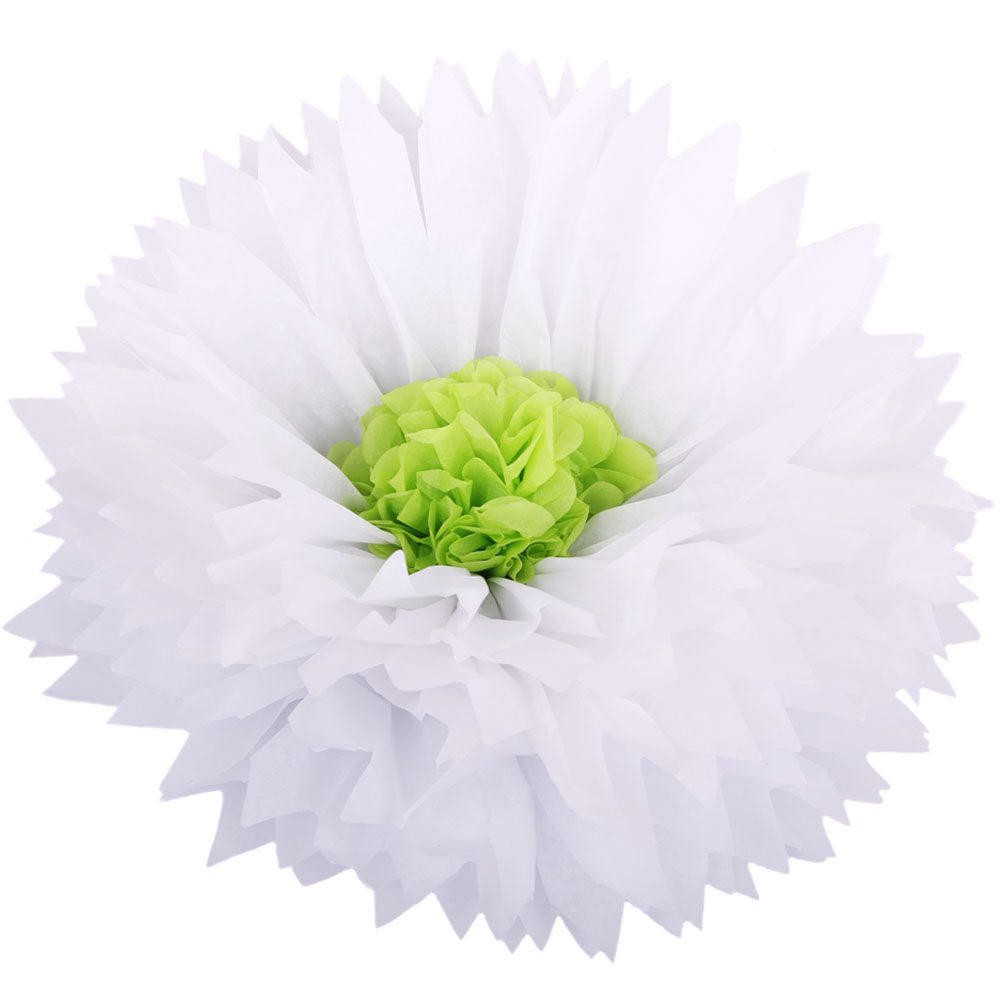Бумажный цветок 50 см белый+салатовый