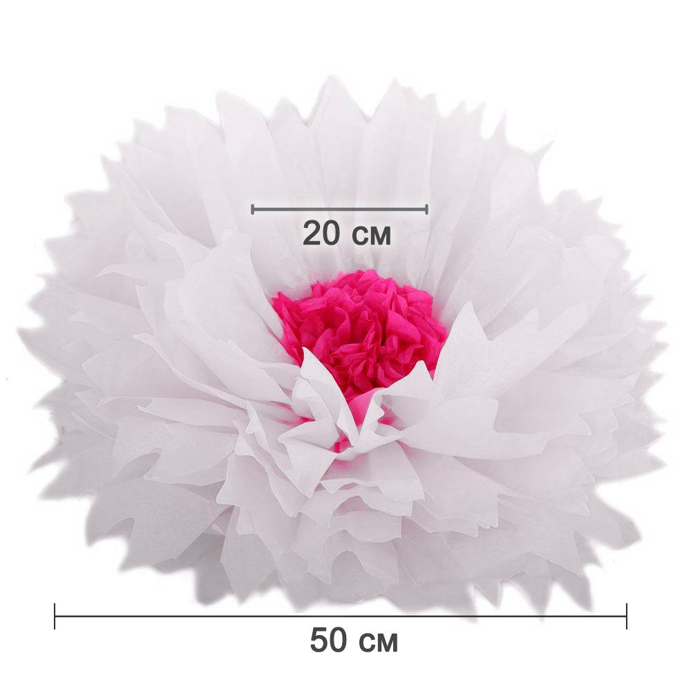 Бумажный цветок 50 см белый+малиновый