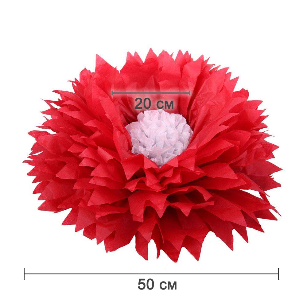 Бумажный цветок 50 см красный+белый