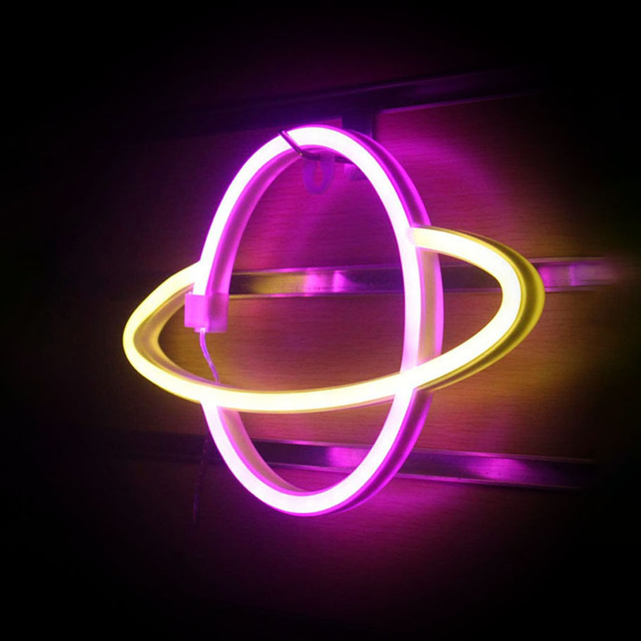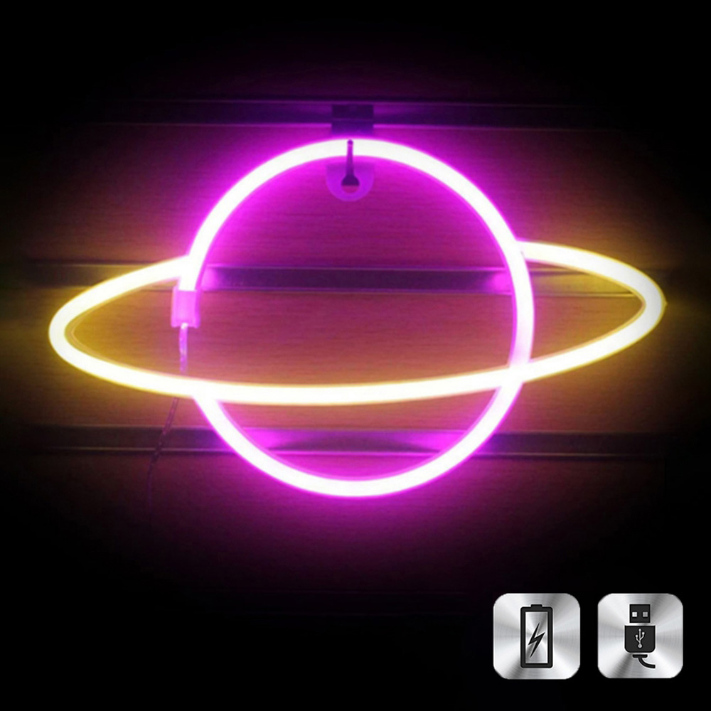 Неоновая подвеска "Сатурн" 30 х 17,5 см, от батареек и USB, розовый+желтый