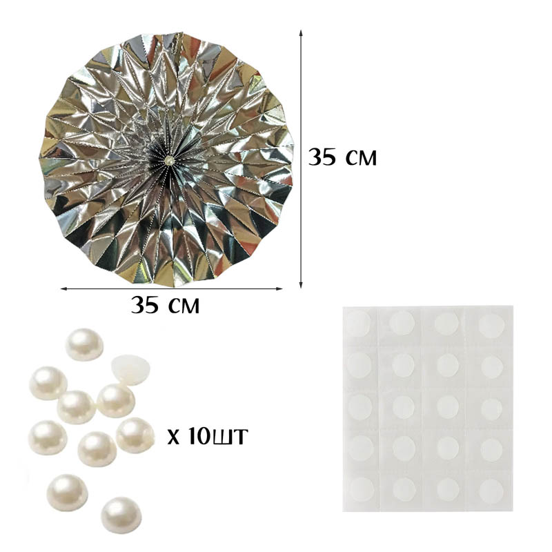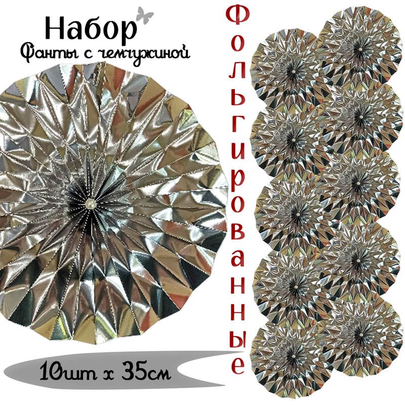 Фанты фольгированные с жемчужиной НАБОР 10шт х 35см, серебро