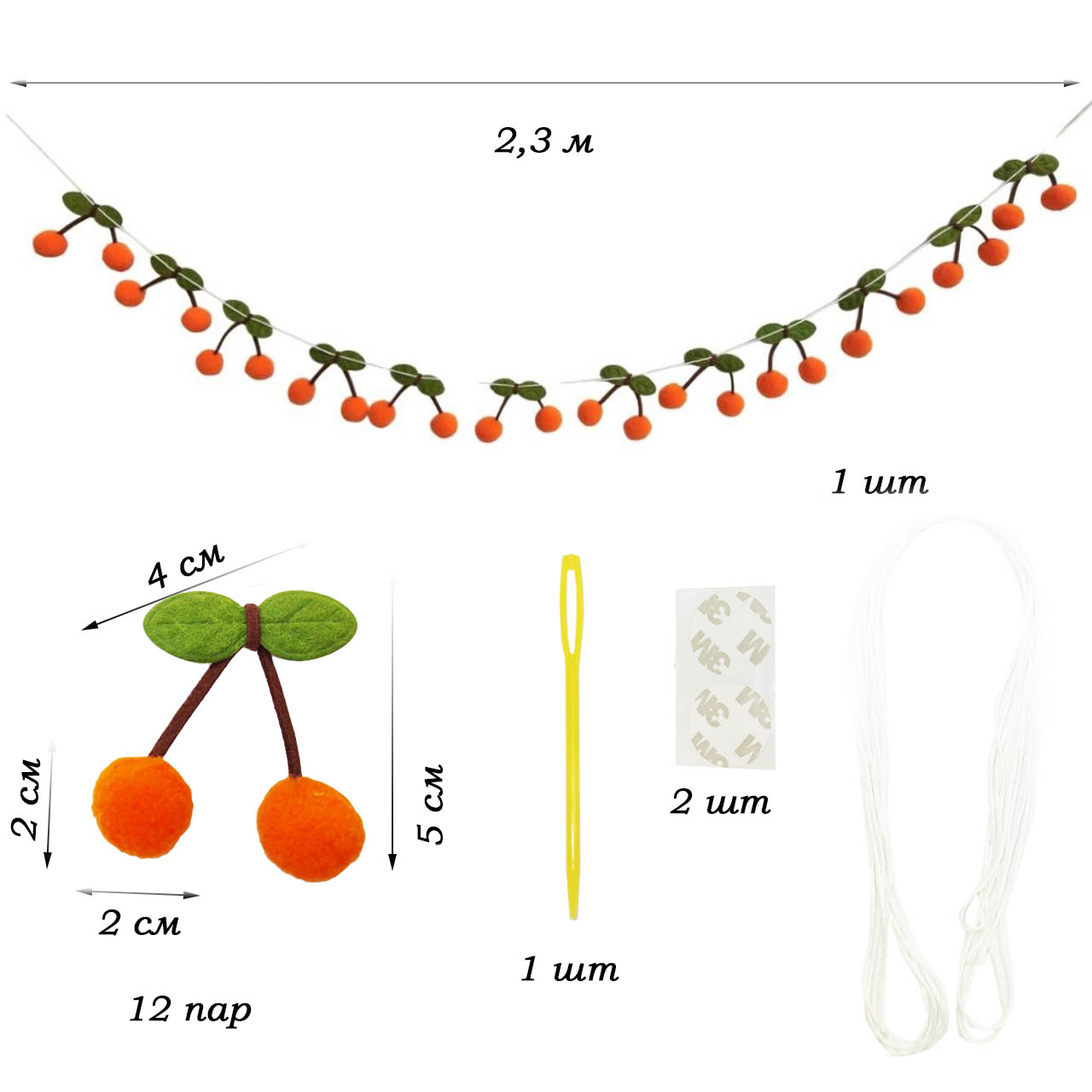 Гирлянда на веревке "Вишенки"  2 см х 24 шт х 2,3 м, "оранжевый" - 1 шт.