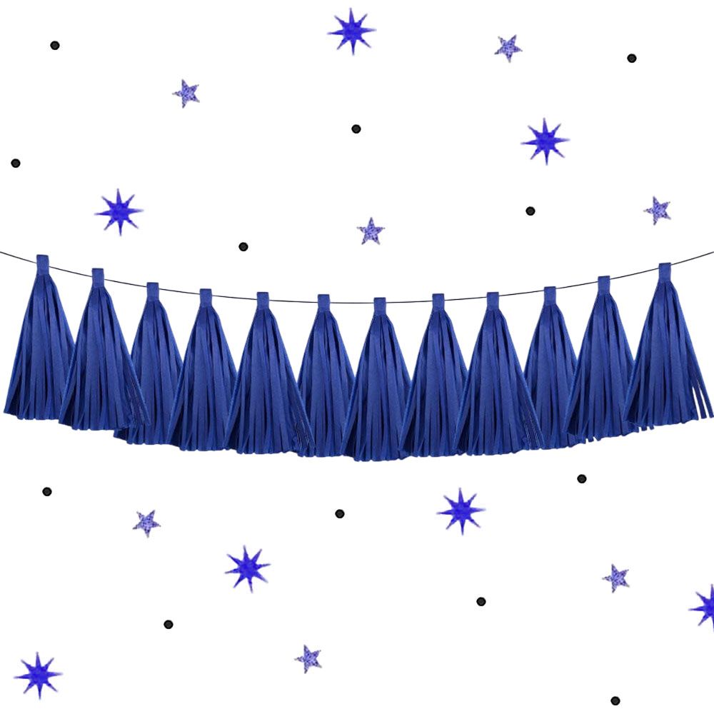 Гирлянда тассел 12 кисточек по 10 листов, темно-синий