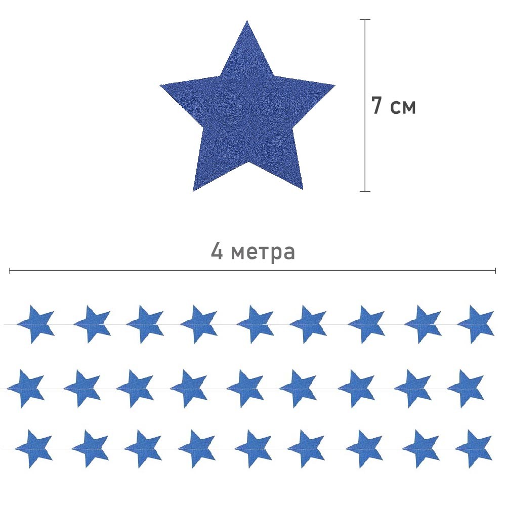 Гирлянда "Звезды" блеск 7 см х 4 м, синий