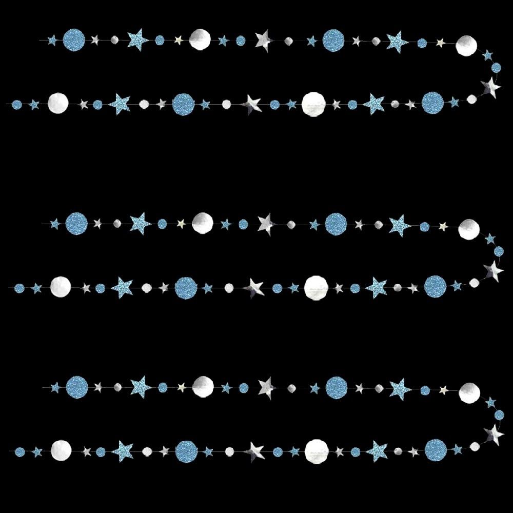 Гирлянда Звезды/Кружочки 4 м металлик Серебро/ блеск Голубой