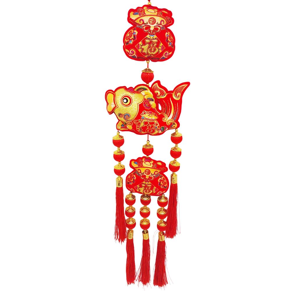 Китайская подвеска 20х80см, Рыбка + Денежные мешки