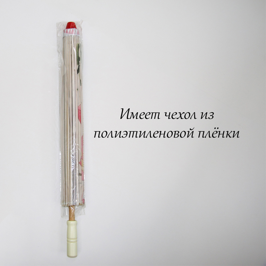 Каркас зонтика выполнен из дерева,купол зонта изготовлен из водоотталкивающего материала,который не пропускает воду.