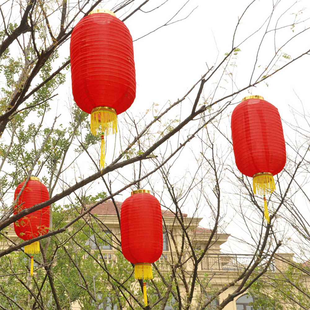 Китайский фонарь Цилиндр с бахромой 30х55 см, красный