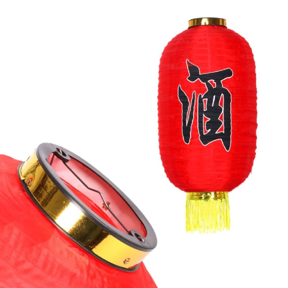 Китайский фонарь Цилиндр с надписью "Винный" с бахромой 30х55 см, красный