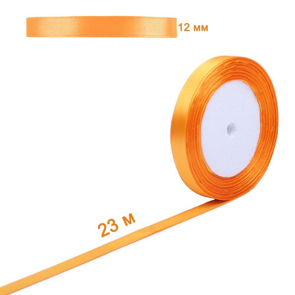 Лента атласная светло-оранжевая 12 мм х 23 м