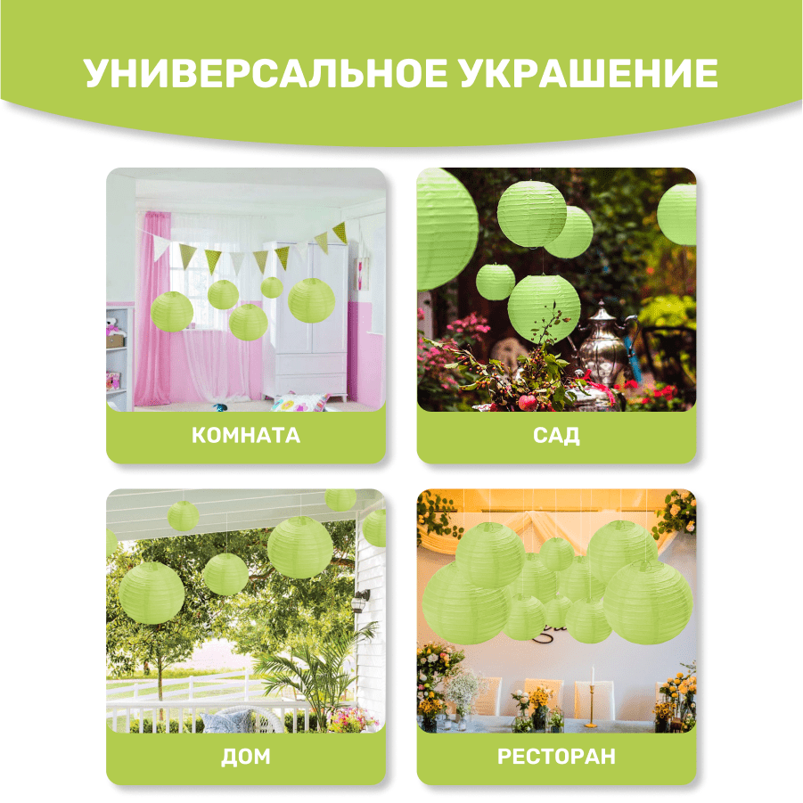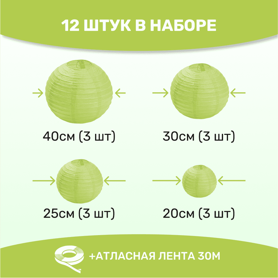 Комплект подвесные фонарики 12 шт салатовый