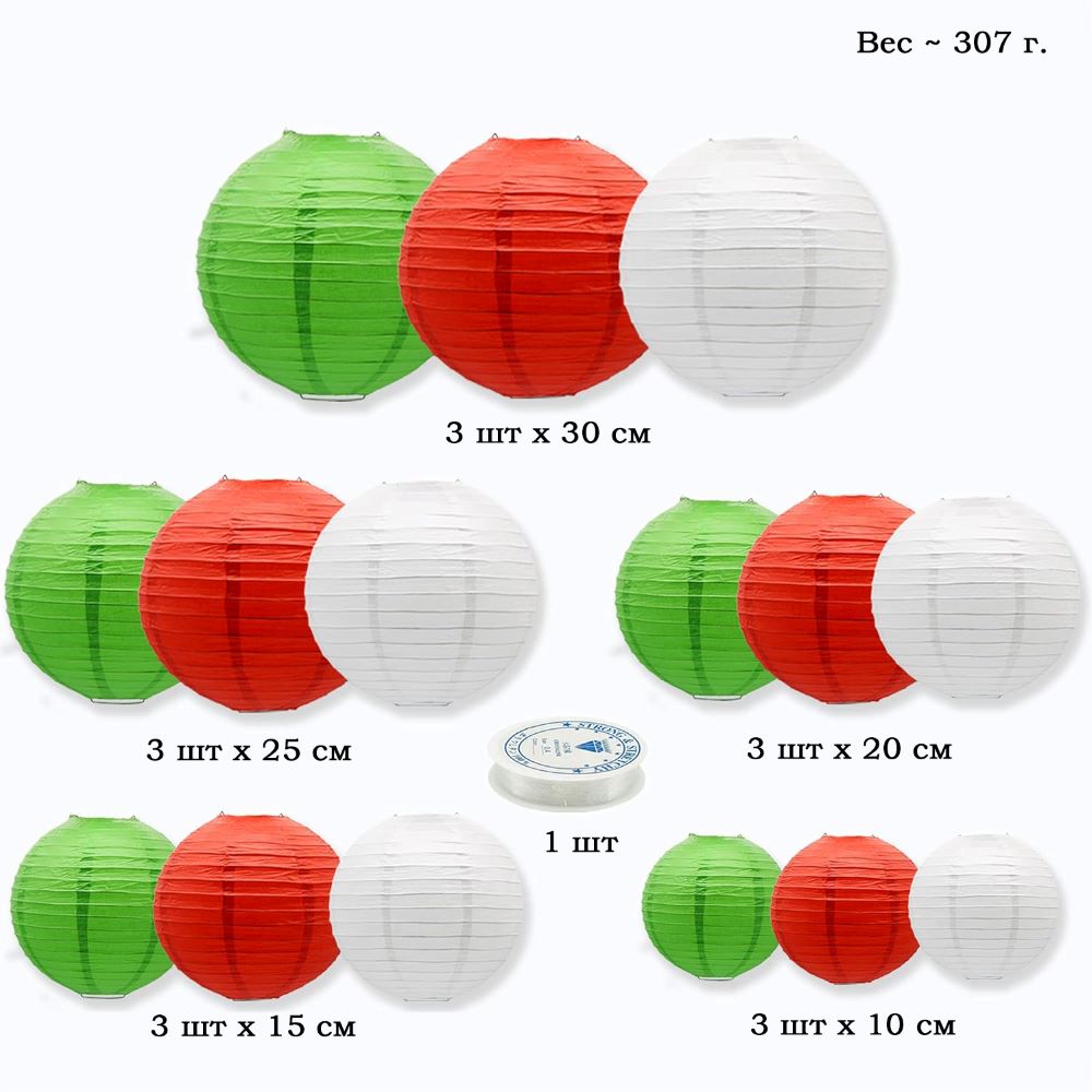 Набор подвесные фонарики 15 шт + леска, белый+зеленый+красный