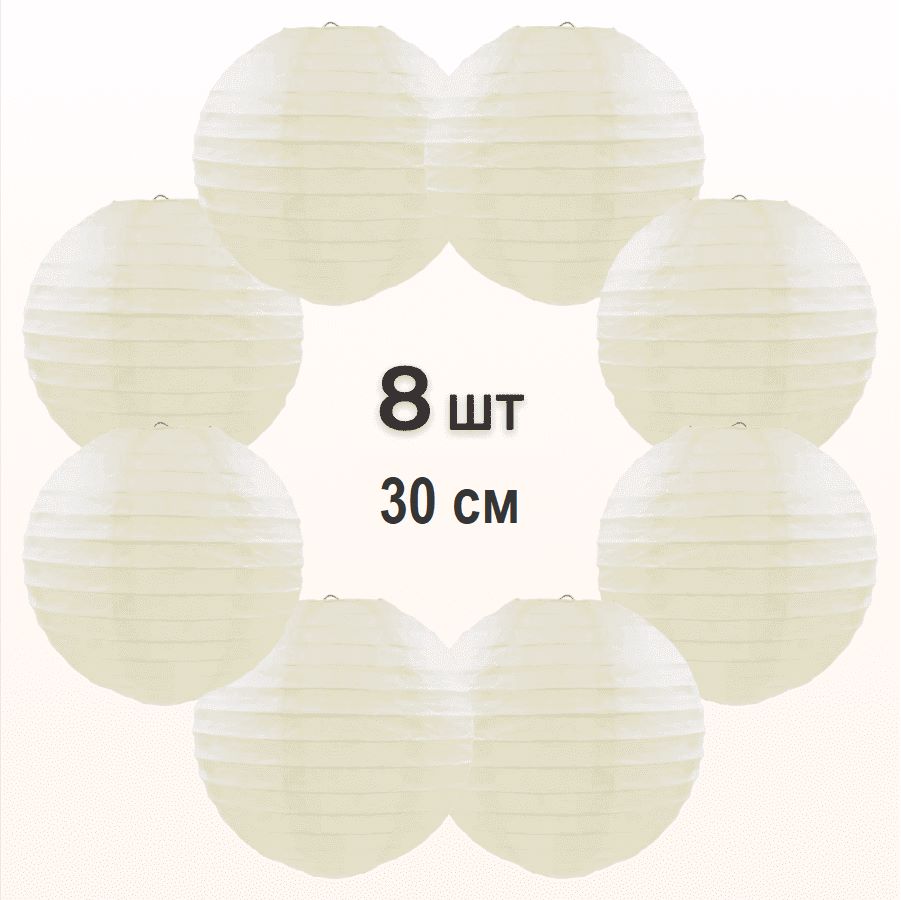 Комплект подвесные фонарики 30 см х 8 шт, айвори