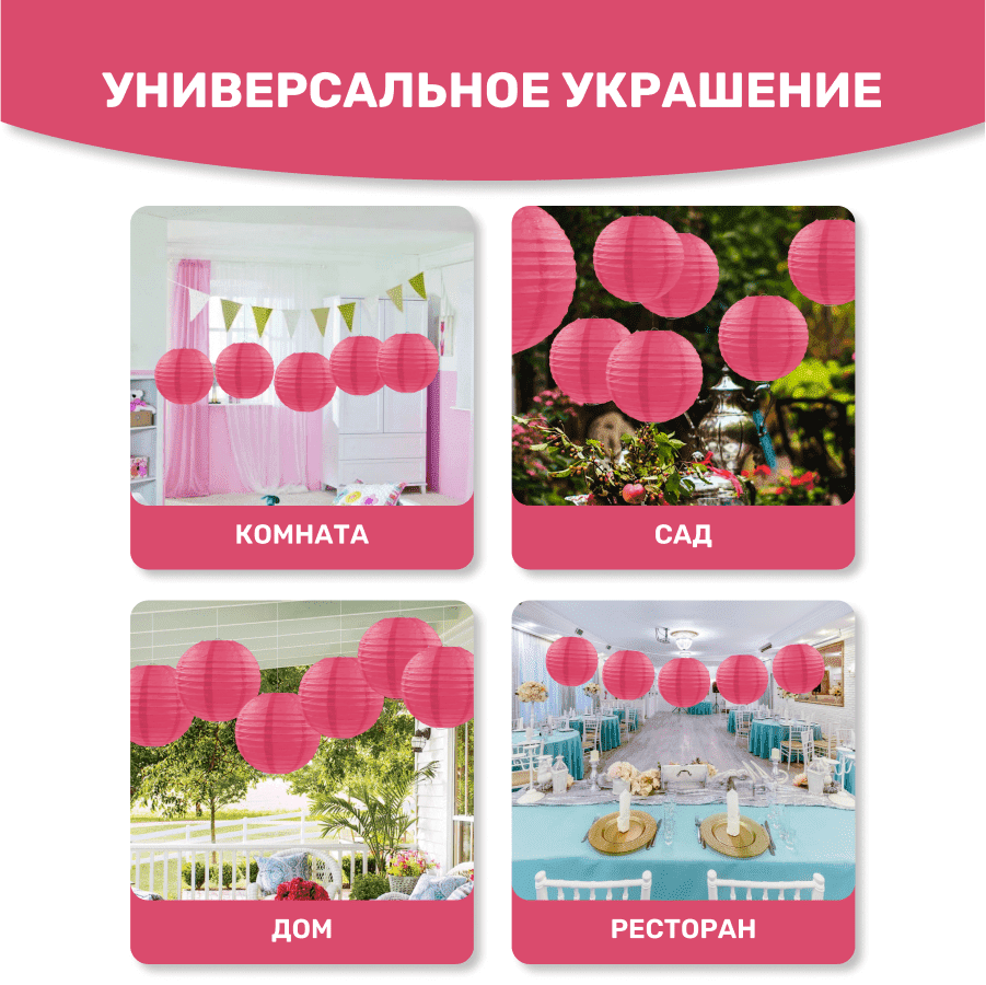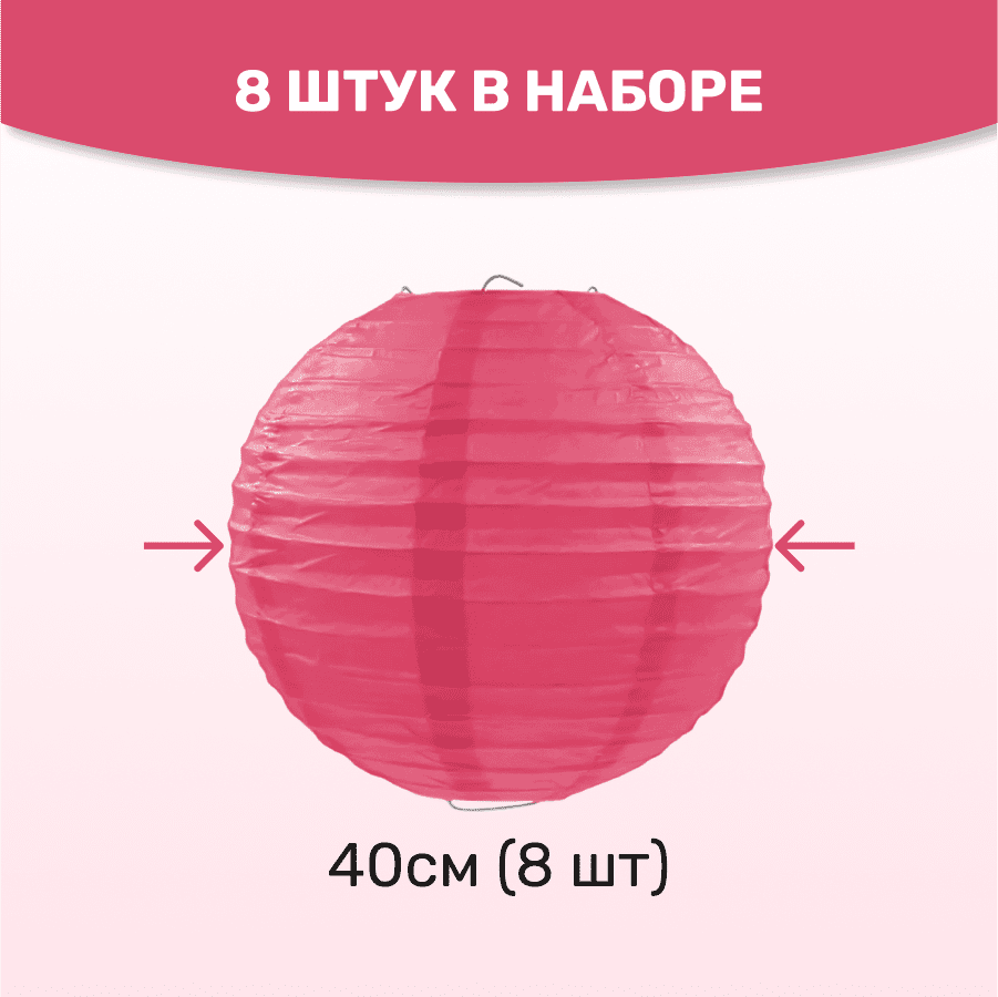 Комплект подвесные фонарики 40 см х 8 шт, амарантовый