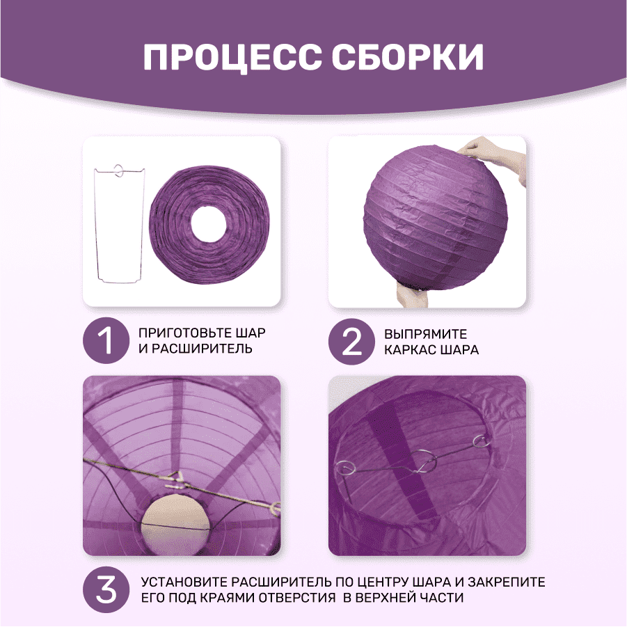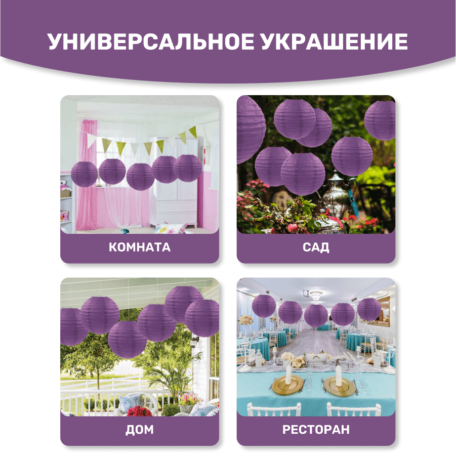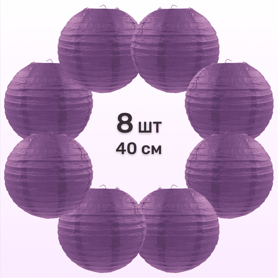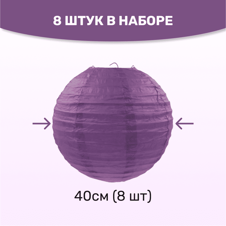 Комплект подвесные фонарики 40 см х 8 шт, фиолетовый