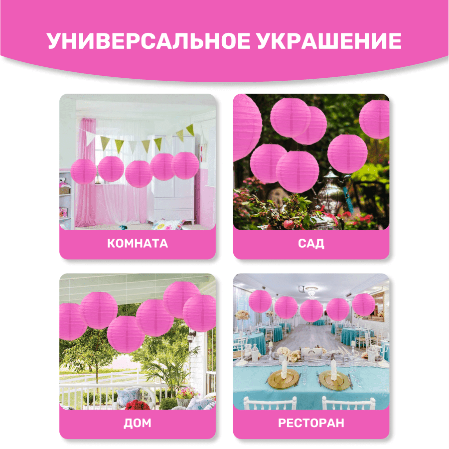Комплект подвесные фонарики 40 см х 8 шт, малиновый
