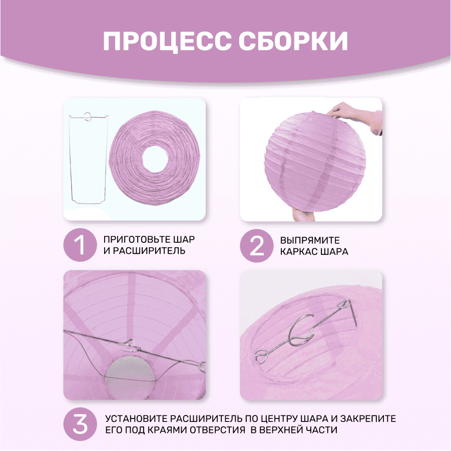 Комплект подвесные фонарики 40 см х 8 шт, светло-сиреневый