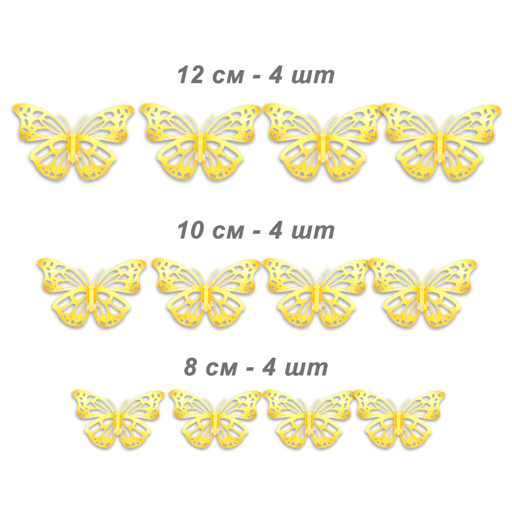 Наклейки Бабочки № 11 бумага металлик 12 шт золото