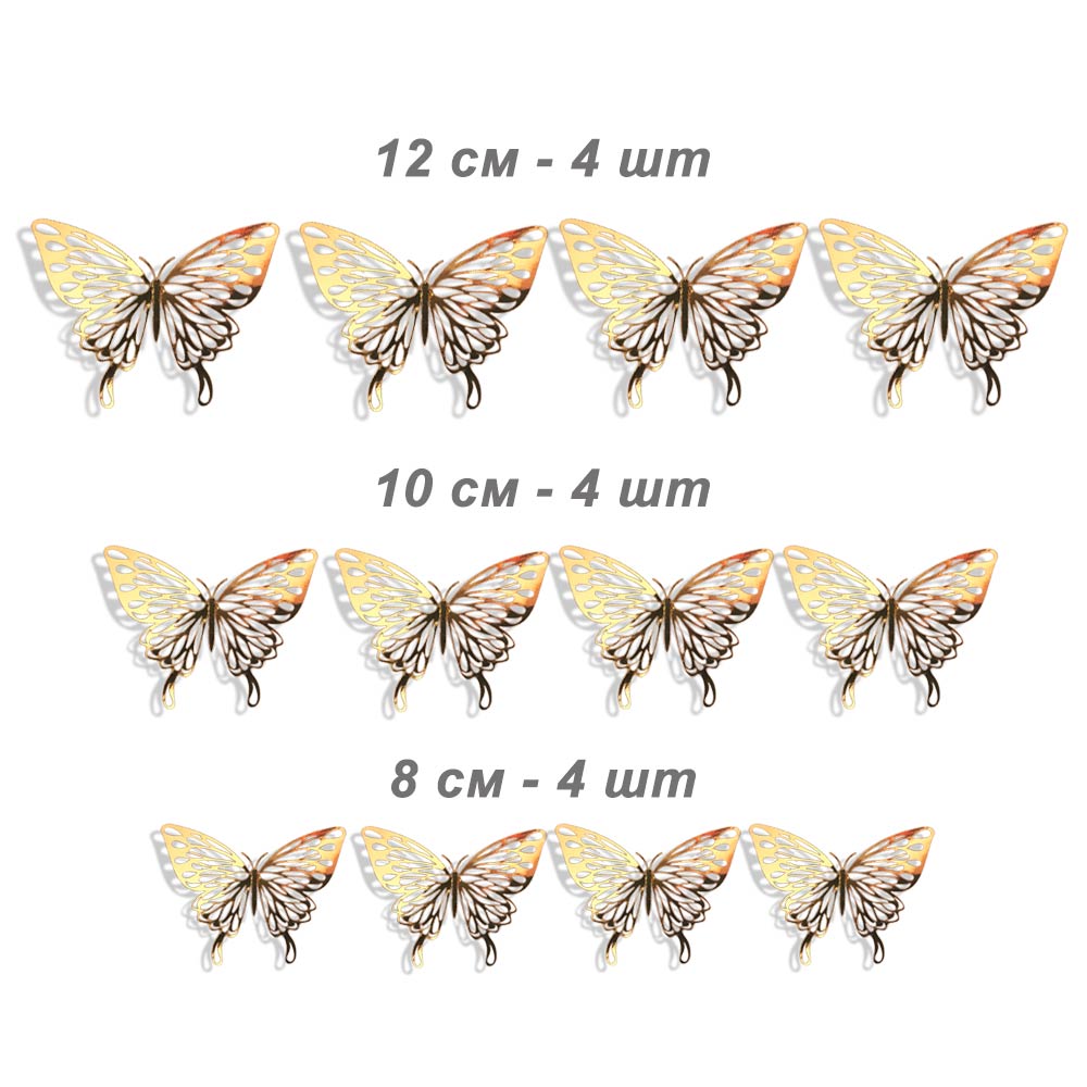 Наклейки Бабочки № 12 бумага металлик 12 шт золото