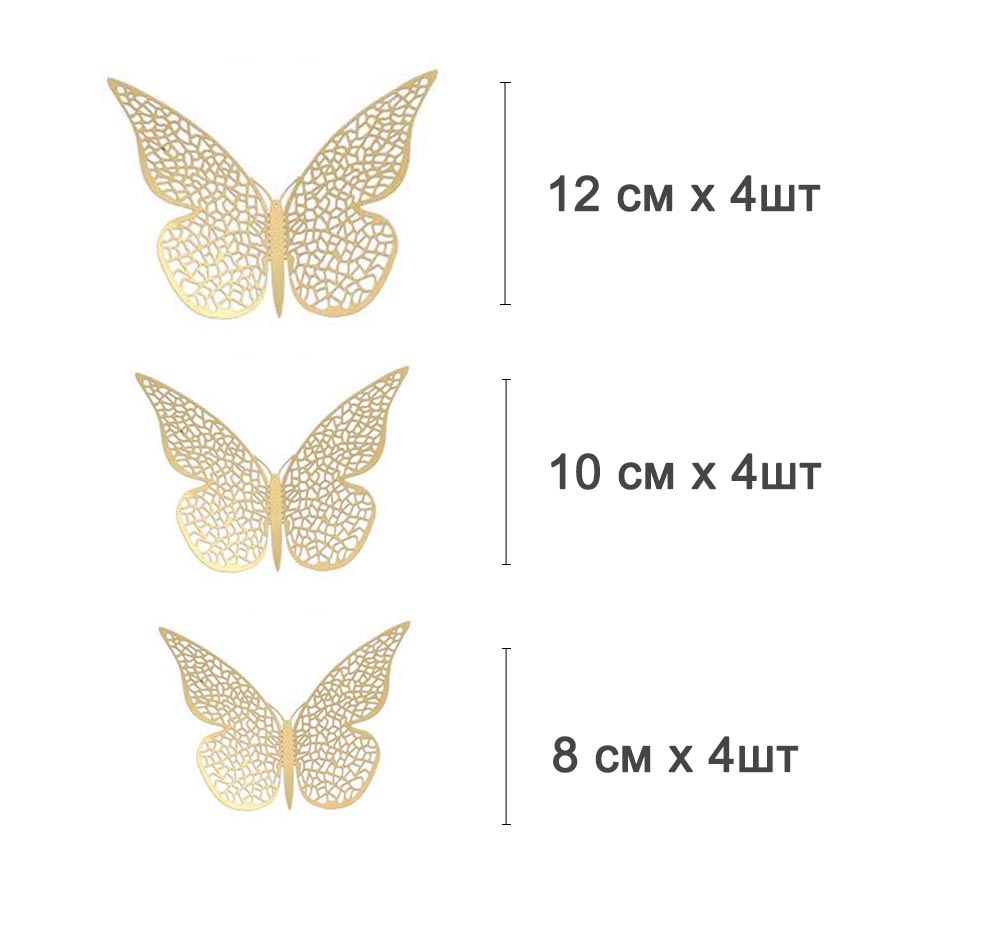 Наклейки Бабочки №1 12 шт бумага золото