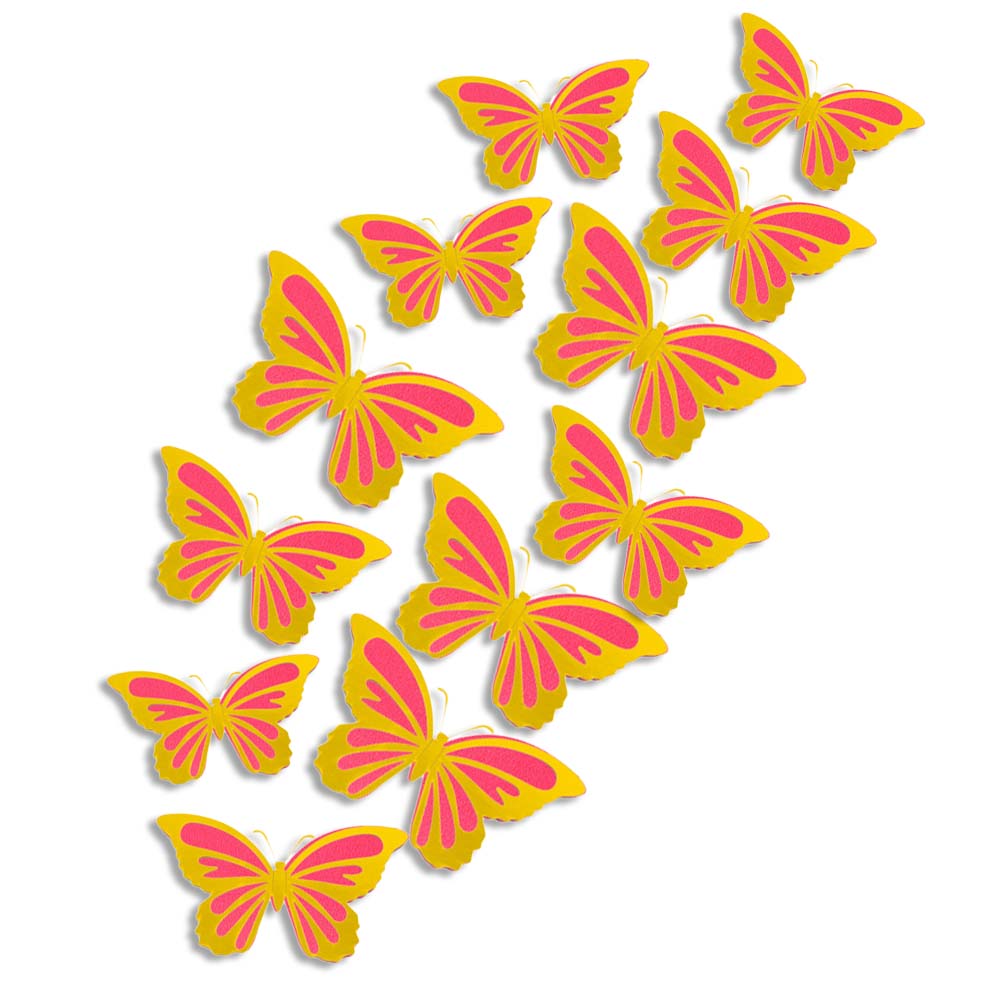 Наклейки Бабочки двойные перламутровые бумажные № 6 12 шт золото+малиновый