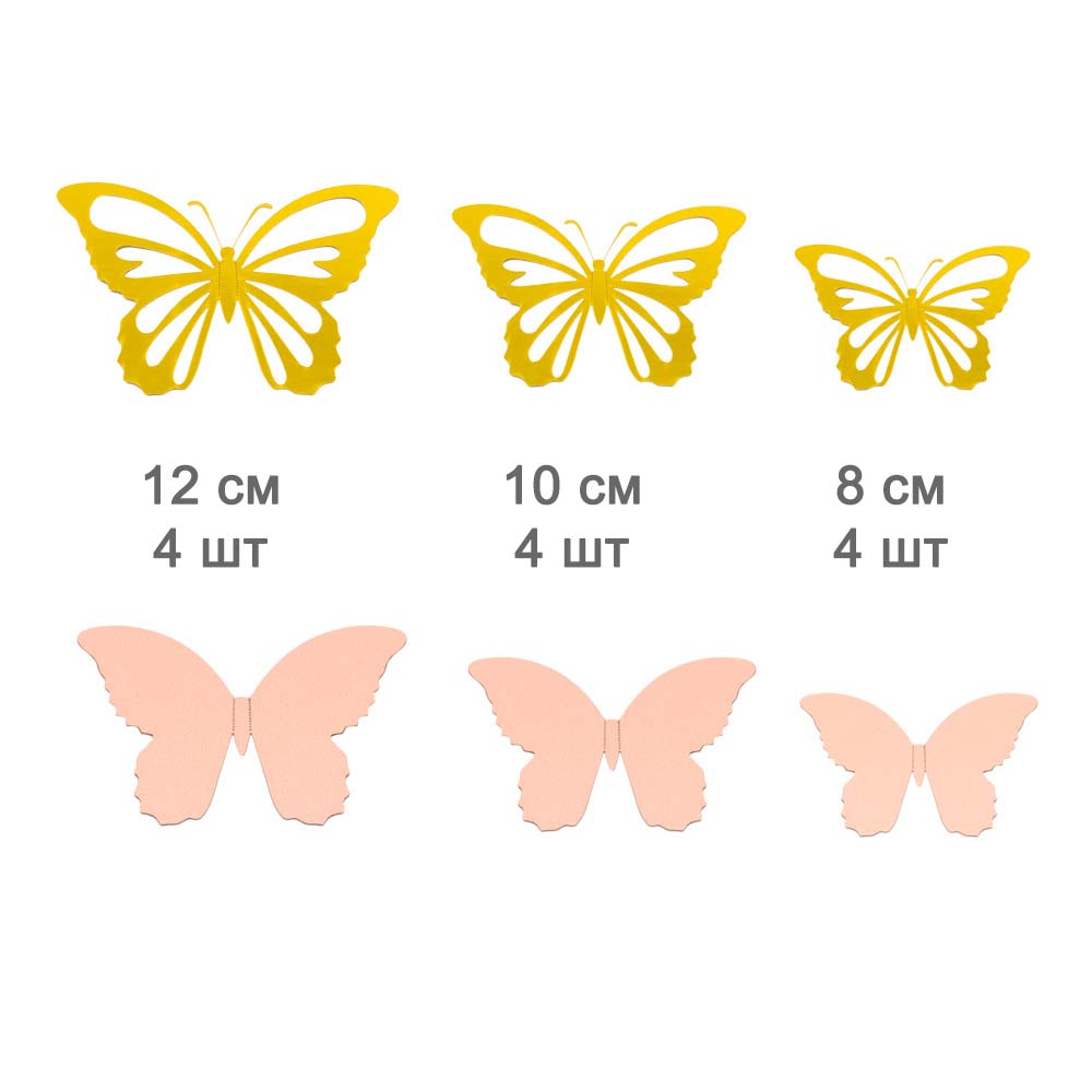 Наклейки Бабочки двойные перламутровые бумажные № 6 12 шт золото+персиковый