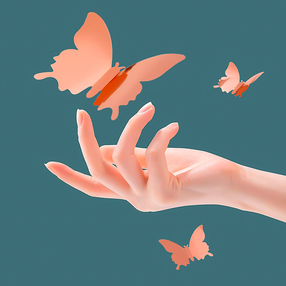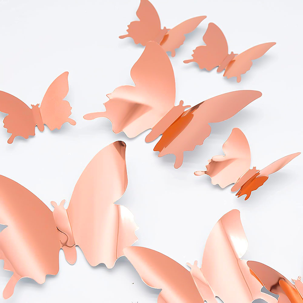 Наклейки Бабочки пластиковые № 9 12 шт металлик серебро+розовое золото
