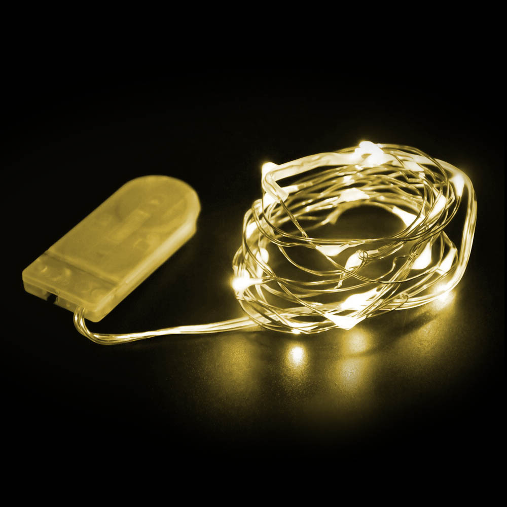 Нить "Роса" серебро, 2 м х 20 диодов, от батареек, желтый