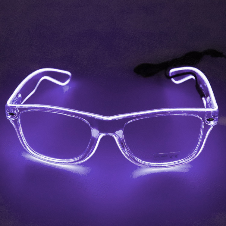 Светодиодные очки имеют прозрачную оправу, прозрачные линзы. Работают от двух батареек 2АА