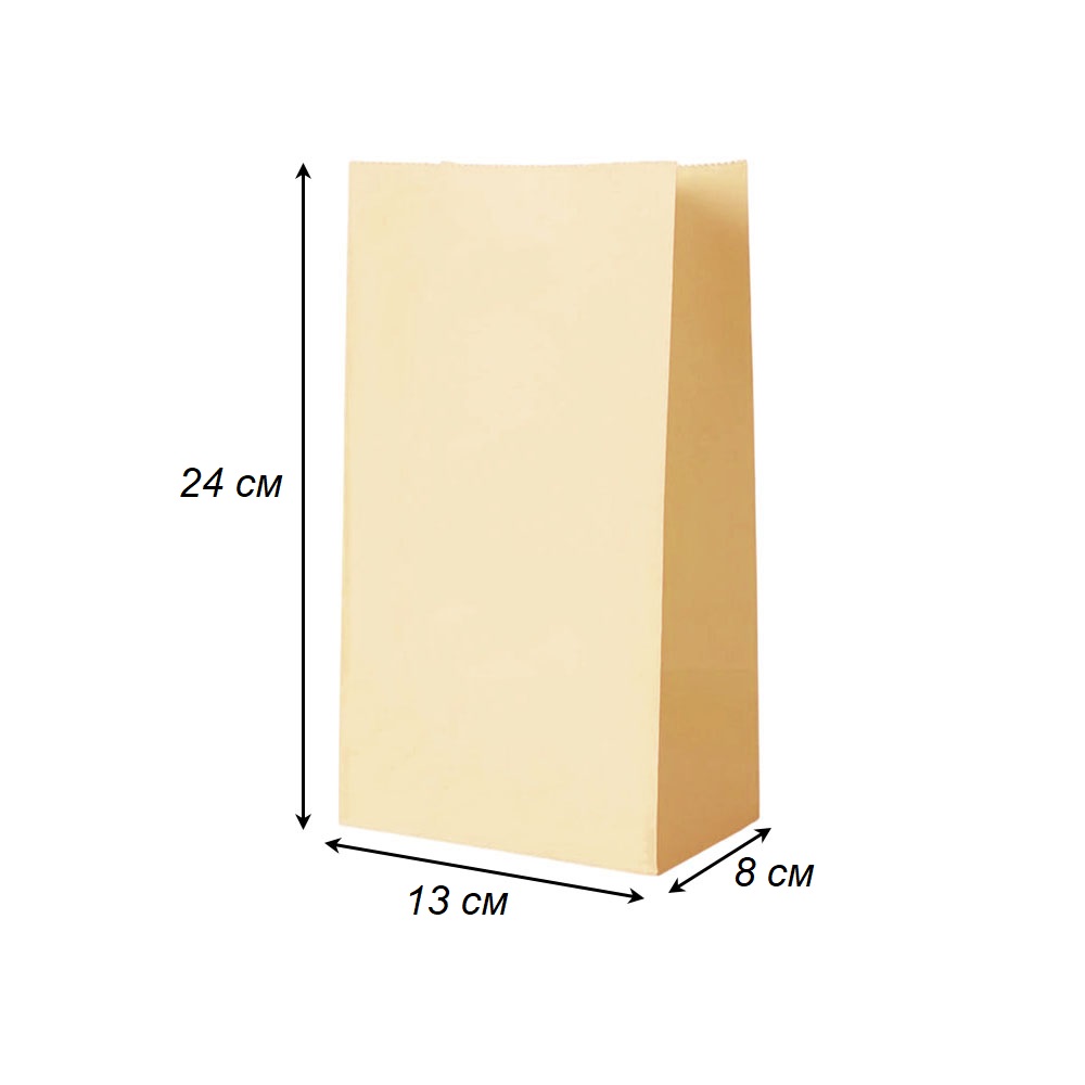Подарочный пакет из крафтовой бумаги пастельного оттенка с белыми бумажными ручками и белой внутренней стороной.