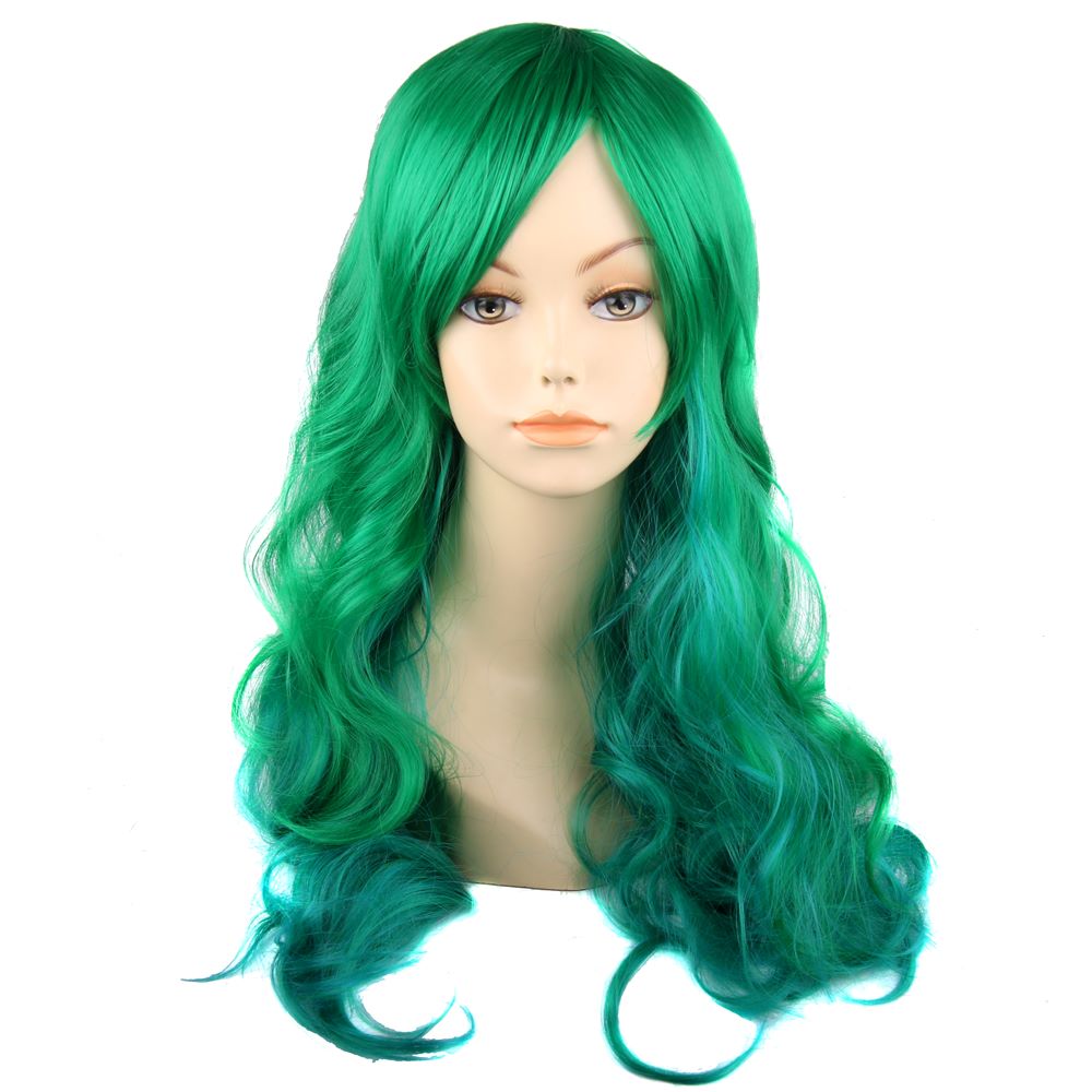 Парик радужный длинный изготовлен из современного искусственного материала.