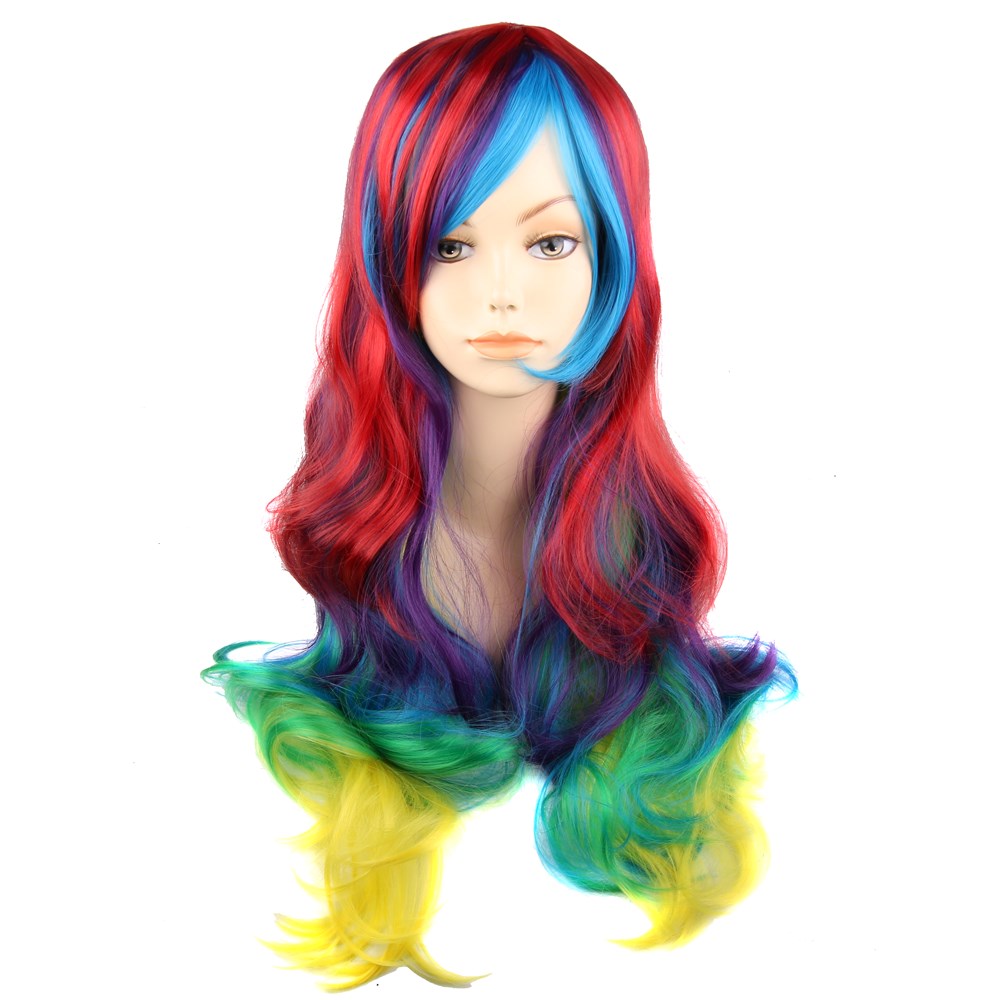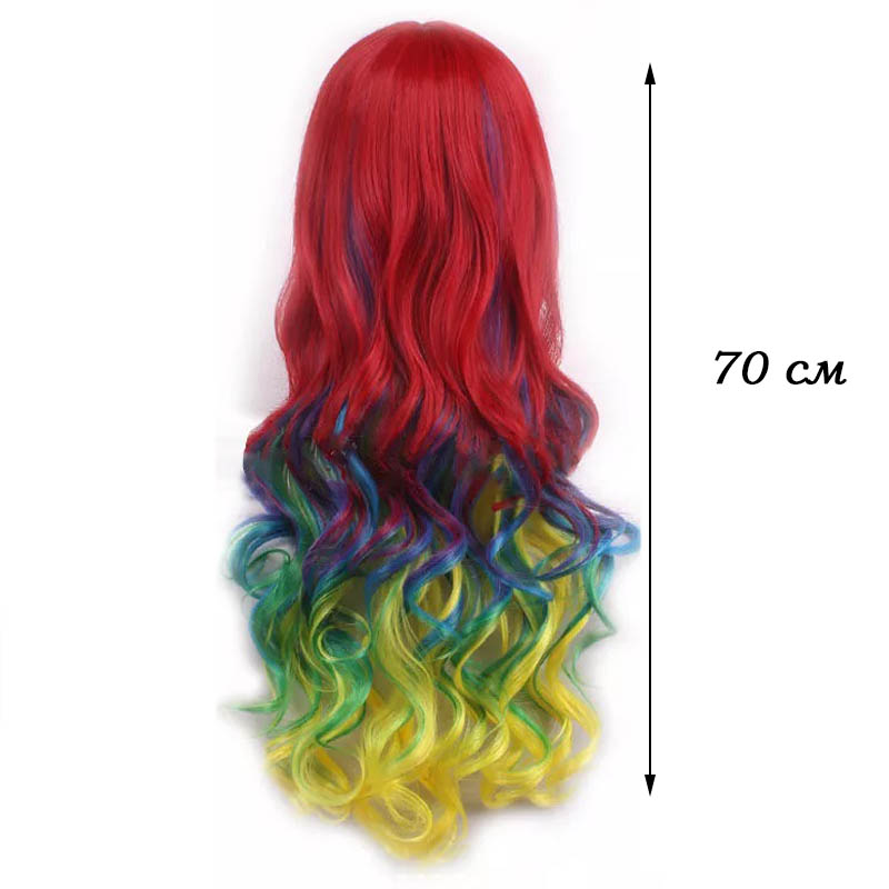 Парик радужный длинный изготовлен из современного искусственного материала.