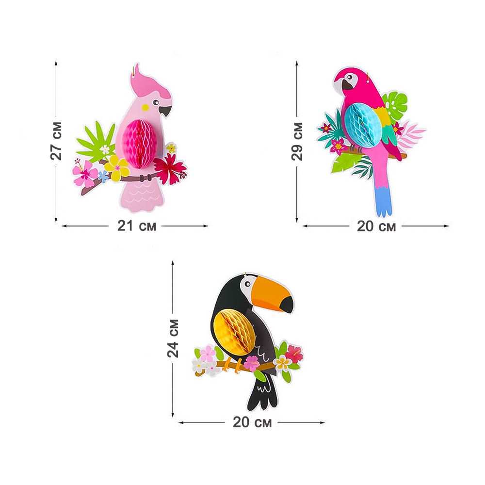 Подвески Тропические птицы 3 шт, 29х20 см, 27х21 см, 24х20 см