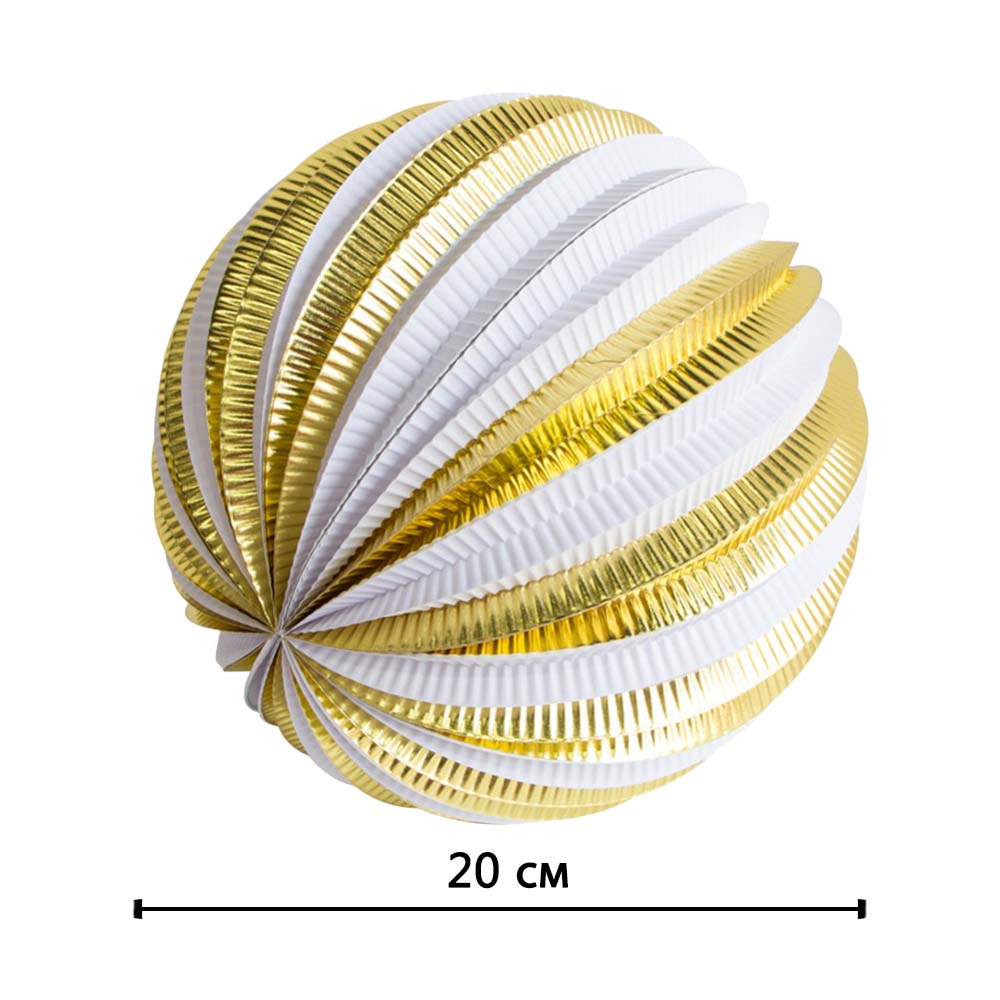 Подвесной фонарик "Аккордеон" 20 см горизонтальные полоски, Золото