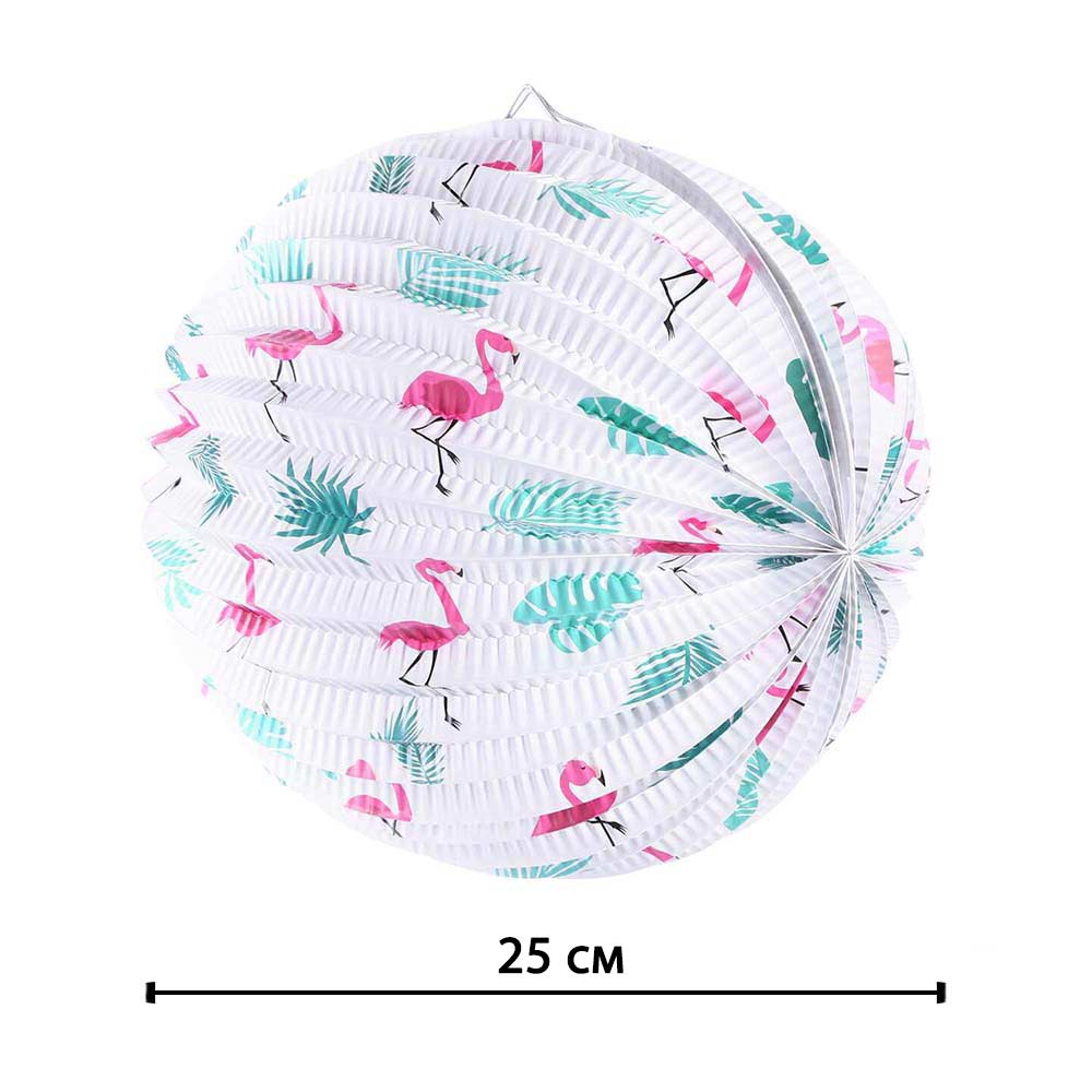 Подвесной фонарик "Аккордеон" 25 см, Розовые Фламинго