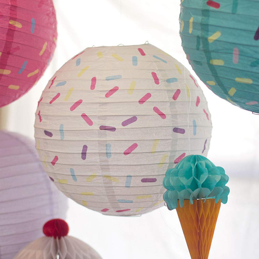 "Подвесные фонарики стандарт конфетти — праздничный декор, которым легко обозначить тематику вечеринки. Уместен на рождественских и новогодних карнавалах. Эффектно смотрится на большом пространстве.