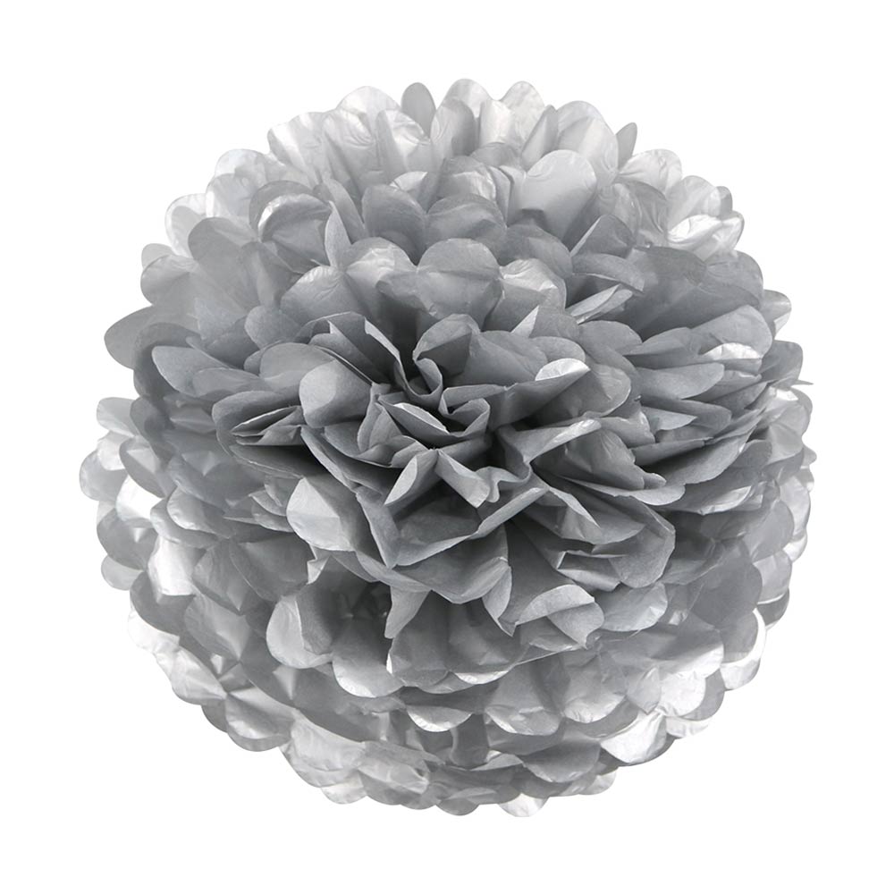 Серебряный бумажный помпон диаметром 40 см — стильное и лёгкое украшение для праздников, фотозон, витрин и интерьера. Отлично подойдёт для дней рождений, свадеб, вечеринок и тематических мероприятий.