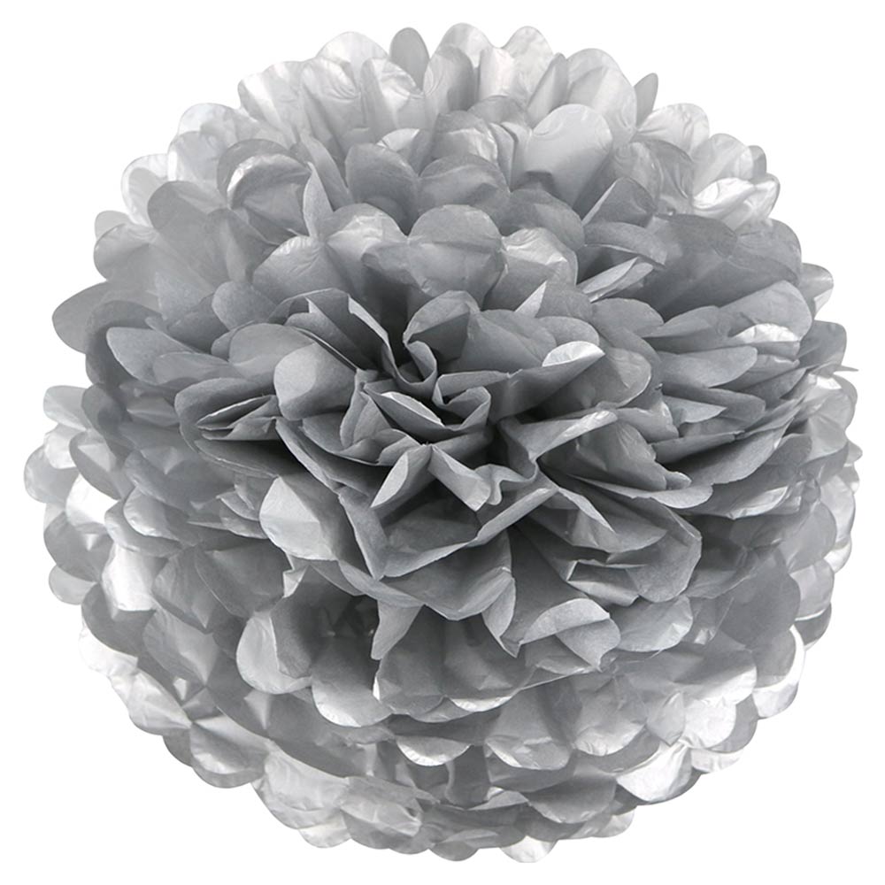 Серебряный бумажный помпон диаметром 50 см — стильное и лёгкое украшение для праздников, фотозон, витрин и интерьера. Отлично подойдёт для дней рождений, свадеб, вечеринок и тематических мероприятий.